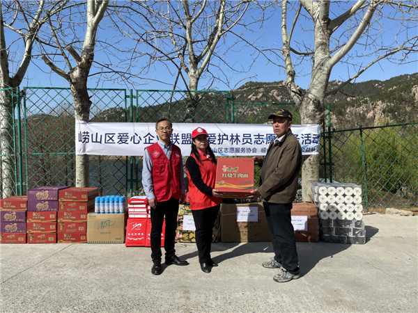 嶗山區(qū)聯(lián)合愛心企業(yè)聯(lián)盟為護林人員捐贈物資