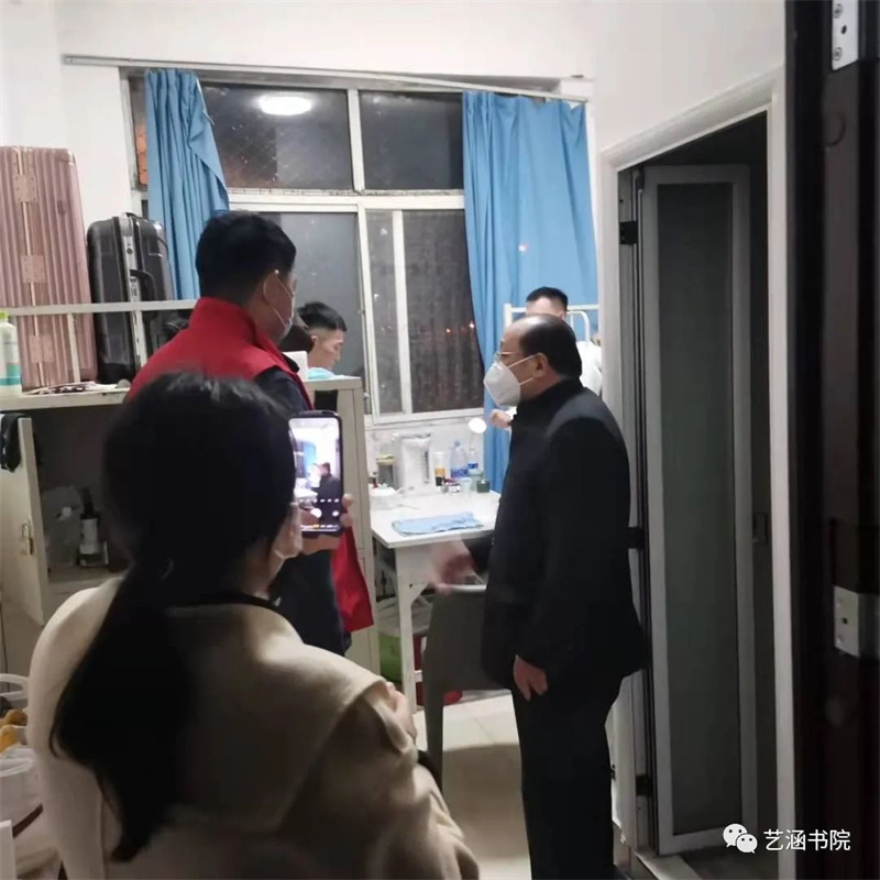 3月14日董事長(zhǎng)走進(jìn)藝涵書(shū)院,詢問(wèn)學(xué)生基本學(xué)習(xí)、生活需求,及時(shí)有效了解學(xué)生合理訴求,還就有關(guān)當(dāng)前學(xué)生線上上課等方面與學(xué)生展開(kāi)親切交談,督促學(xué)生在當(dāng)前形勢(shì)下也要保持積極向上的精神狀態(tài),養(yǎng)成良好的學(xué)習(xí)態(tài)度,要始終堅(jiān)持把學(xué)習(xí)放在首要位置。藝涵書(shū)院建立輔導(dǎo)員值班制度,設(shè)置輔導(dǎo)員值班崗。溫馨校園,師生相伴,所有輔導(dǎo)員下沉?xí)?,隨時(shí)待命,為學(xué)生提供精準(zhǔn)、精細(xì)的服務(wù),細(xì)致的人文關(guān)懷。輔導(dǎo)員每天都會(huì)走進(jìn)學(xué)生宿舍,查看宿舍消毒通風(fēng)情況、衛(wèi)生狀況,指導(dǎo)學(xué)生做好個(gè)人防護(hù)。