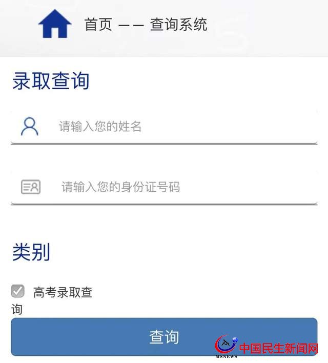 第三步:進入查詢界面,輸入“姓名”和“身份證號”即可查詢錄取結(jié)果。