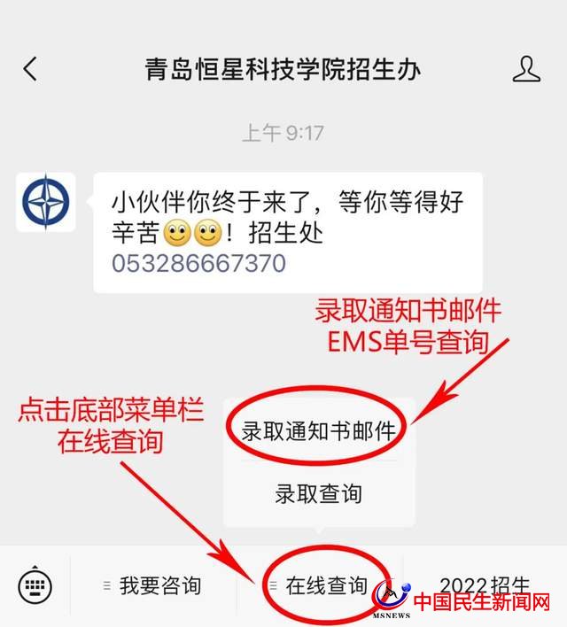第二步:點擊底部菜單欄在線查詢--錄取通知書郵件