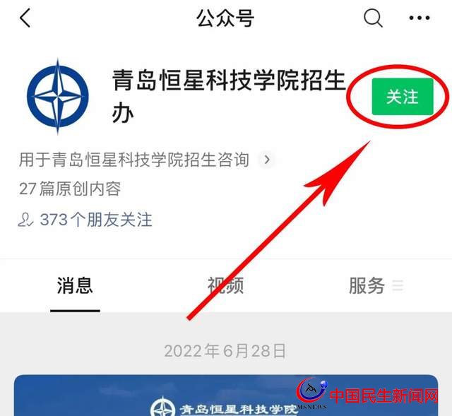 第一步:點擊下方關(guān)注“青島恒星科技學(xué)院招生辦”微信公眾號。