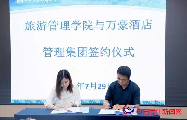 王院長與洲際酒店管理公司、香格里拉大酒店、恒力酒店管理公司、萬豪酒店集團(tuán)、恒星大酒店代表簽署共建協(xié)議書。