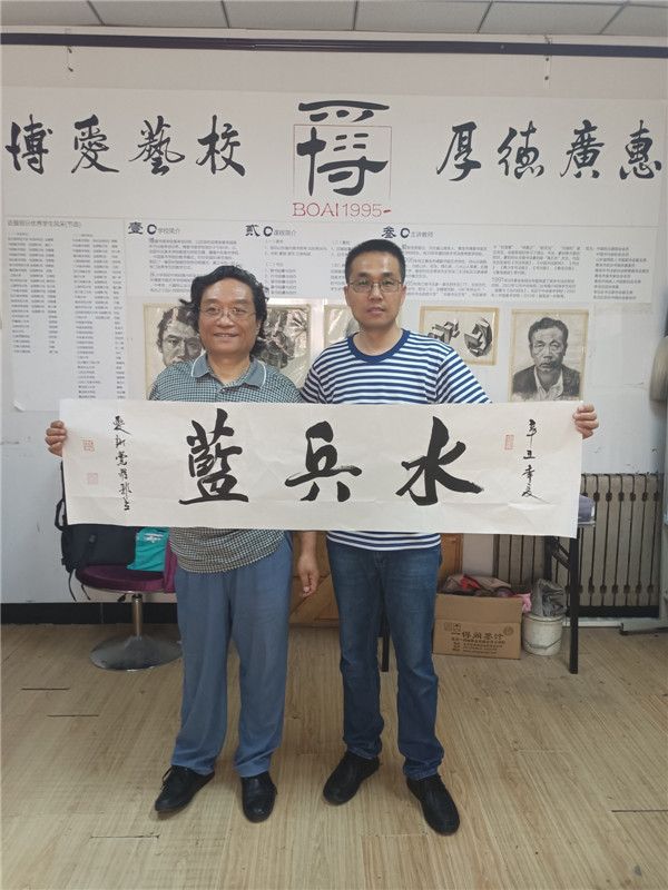 接過郭立先生的“水兵藍(lán)”作品,周學(xué)禮表示要好好珍惜書法家給自己的鼓勵(lì)和鞭策,自己一定好好努力,將“水兵藍(lán)”掛在自己的辦公室。每天有郭立先生的榜樣作參照,自己也會(huì)有無窮的力量,將“水兵藍(lán)”做強(qiáng)做大,無愧當(dāng)兵的歷史。