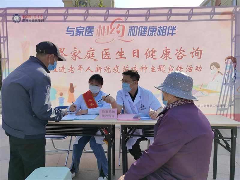 在5.19世界家庭醫(yī)生日到來之際,中心還相繼開展了表彰交流和健康咨詢義診活動(dòng)。5月18日中心借助全民核酸檢測的契機(jī),在居民區(qū)設(shè)置咨詢點(diǎn),開展“世界家庭醫(yī)生日健康咨詢暨推進(jìn)老年人新冠疫苗接種主題宣傳活動(dòng)”,由全科醫(yī)生、家醫(yī)助手、心理醫(yī)生和中醫(yī)科醫(yī)師共同組成的中心家庭醫(yī)生服務(wù)團(tuán)隊(duì)現(xiàn)場為居民們免費(fèi)提供血糖血壓監(jiān)控、心理咨詢和中醫(yī)診脈服務(wù),發(fā)放健康教育宣傳材料,并安排預(yù)防接種門診的醫(yī)務(wù)人員現(xiàn)場為老年居民解答新冠疫苗接種的困惑和疑問,并開展現(xiàn)場評估。