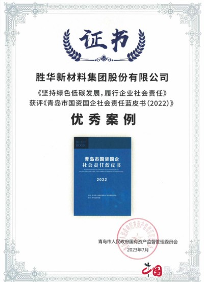 其中,經(jīng)控集團申報的勝華新材料集團股份有限公司《堅持綠色低碳發(fā)展,履行企業(yè)社會責(zé)任》獲評《青島市國資國企社會責(zé)任藍皮書(2022)》“綠色低碳發(fā)展篇”優(yōu)秀案例。這是經(jīng)控集團及所屬企業(yè)繼獲評2022山東社會責(zé)任企業(yè)以來,在踐行社會責(zé)任領(lǐng)域獲得的又一殊榮。