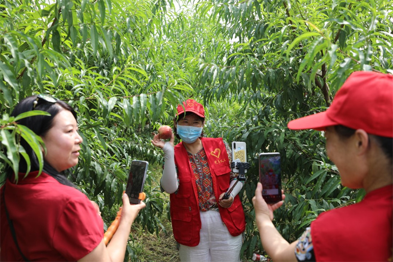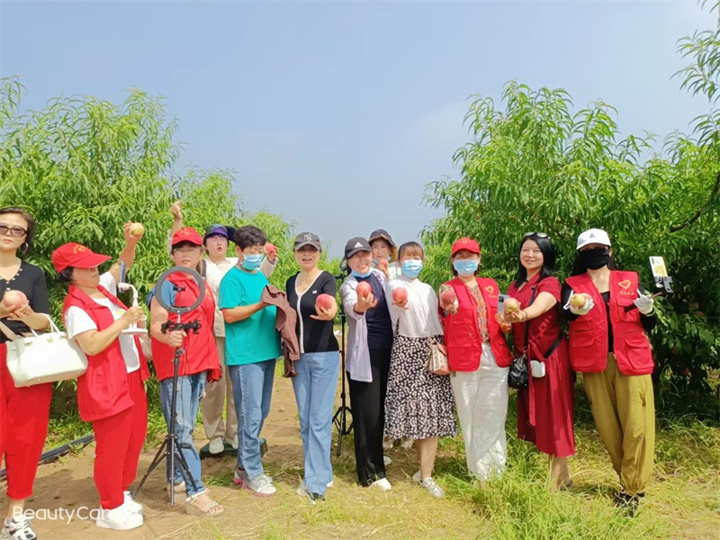 9月2日上午,近百名直播帶貨主播接續(xù)匯聚山東省淄博市文昌湖區(qū)商家鎮(zhèn)七河村,紛紛在碩果累累的文昌大紅桃園里,展開長達(dá)兩個(gè)多小時(shí)的現(xiàn)場(chǎng)直播,成為商家鎮(zhèn)首屆“文昌大紅桃采摘節(jié)暨百名主播鄉(xiāng)村行”活動(dòng)中一道道靚麗風(fēng)景線。