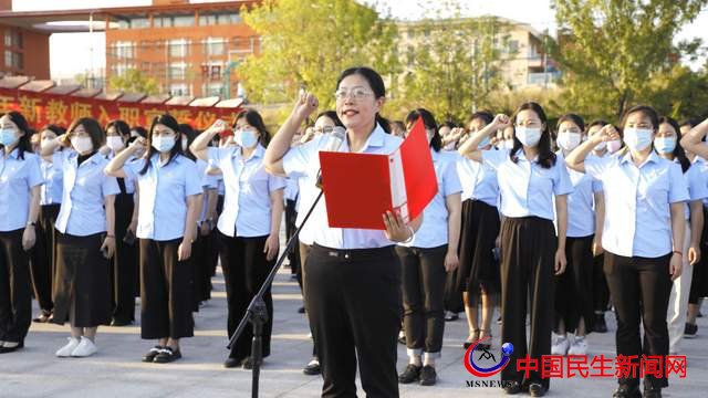 擔任領(lǐng)誓員的是2021年山東省教育系統(tǒng)優(yōu)秀共產(chǎn)黨員、青島市第五屆高校教學(xué)名師榮譽獲得者、機械與汽車工程學(xué)院莊新穎教授。全體新入職教師舉起右手面對國旗和校旗莊嚴宣誓,志愿做一名光榮的人民教師,對黨和人民的教育事業(yè)進行了莊嚴承諾。