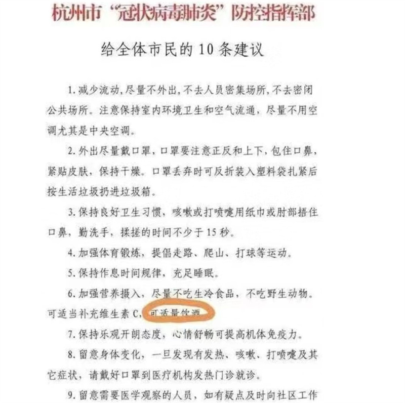 《杭州市“冠狀病毒肺炎”防控指揮部給全體市民的10條建議》第六條寫著“加強營養(yǎng)攝入,盡量不吃生冷食品,不吃野生動物??蛇m當(dāng)補充維生素 C,