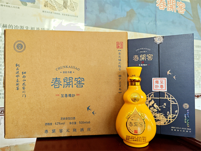 前些年隨著山東芝麻香白酒的異軍突起,馮金國抓住時機(jī),適時推出了春開窖“冬醞136”高端芝麻香白酒。該產(chǎn)品以發(fā)酵周期136天以上的芝麻香酒為基酒,在地下酒窖內(nèi)經(jīng)過2年以上的存儲,按照獨特配方勾調(diào)出成品酒。香氣突出、醇香濃郁、綿甜爽凈,具備了初品焦香、回味醇香、潤舌濃香、余味醬香的突出特點。春開窖新推出的兩款冬醞136芝麻香白酒分別為62度和68度。包裝采用葫蘆(福祿)造型的陶瓷瓶,流光溢彩、典雅別致。各界人士對“冬醞136”高端芝麻香白酒,從酒質(zhì)到包裝都給予了高度評價。