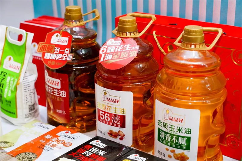 展廳內(nèi)品品好攜金質(zhì)花生油、如同鮮面掛面、高端小麥粉等明星產(chǎn)品亮相活動現(xiàn)場,“金質(zhì)花生油”,精選當(dāng)季膠東上等紅衣大花生為原料,物理壓榨,6顆花生才出一滴金質(zhì)油,56層宣紙低溫過濾,晶瑩剔透、色澤如金,油香醇厚;“如同鮮面”系列掛面原料純凈、品控嚴格,口感勁道爽滑,低脂低鈉,久煮不坨,久放不坨,更有蕎麥面、全麥面等面適合不同年齡段,可滿足不同顧客需求。這些產(chǎn)品一經(jīng)亮相,吸引了不少與會者咨詢了解,無論從產(chǎn)品外觀、包裝、原料、工藝、品質(zhì)及背后蘊藏的研發(fā)理念,都得到了大家的關(guān)注與認可。