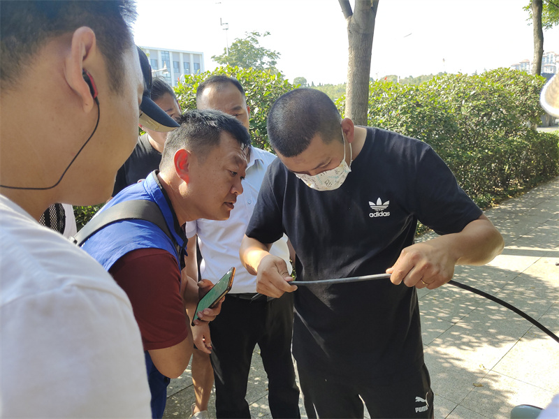 9月8日上午,接到群眾反映松嶺路科大路地鐵站B口附近電線雜亂問題,下午,嶗山區(qū)城市管理局組織調(diào)度聯(lián)通、移動、電信、廣電、鐵塔等相關(guān)通訊單位,對此處問題進(jìn)行處置,發(fā)現(xiàn)部分弱電線中斷已成為廢棄線纜,工作人員馬路現(xiàn)場辦公,按線纜線路尋找到源頭解決問題。