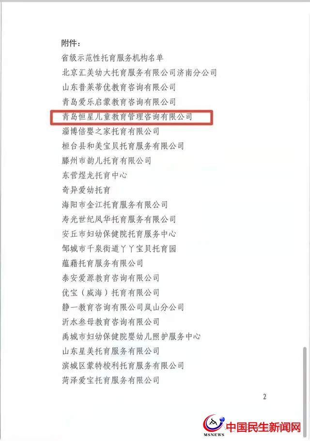 2022年1月14日,山東省衛(wèi)生健康委員會正式確定青島恒星托育中心為“省級示范性托育服務(wù)機構(gòu)”!