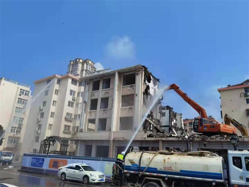 除此之外,城建局協(xié)調(diào)地鐵4號線公司與周邊居民進行了良好溝通,得到了居民對地鐵建設(shè)工作的理解和支持,在拆除全過程實現(xiàn)了居民“零投訴”,真正將實事辦好。在拆除過程中,因拆除房屋緊鄰周邊居民樓,為確保群眾安全,現(xiàn)場搭建了防護棚方便居民安全通行,同時設(shè)置圍擋、警戒線進行封閉管理,增設(shè)鋼板對地面及市政井蓋進行防護,監(jiān)理負責(zé)人全程旁站,指導(dǎo)施工單位嚴格按照施工方案安全拆除;施工過程中也嚴格做好生態(tài)環(huán)保工作,拆除現(xiàn)場配備4輛灑水車,不間斷的進行灑水降塵,減少揚塵污染。