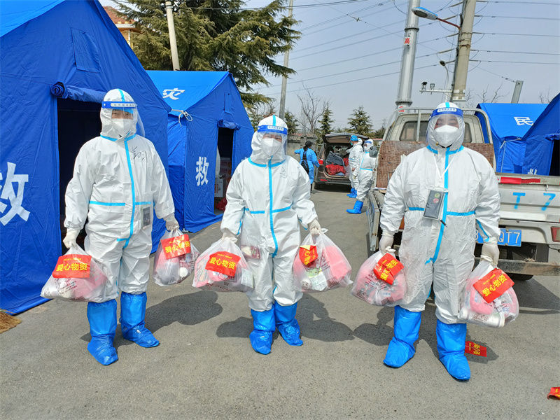 3月20日,四輪核酸檢測(cè)均呈陰性的“志愿者小榮”正式上崗。“當(dāng)了志愿者就有當(dāng)好‘螺絲釘’的覺(jué)悟,哪里需要就往哪里釘。”榮小軍告訴記者,上崗首日,他便與其他志愿者們一起維持核酸檢測(cè)秩序,第二天,則一起幫忙為社區(qū)內(nèi)被封閉在家的居民們發(fā)放生活物資,“昨天一天得發(fā)放了幾百份,我們需要把物資從社區(qū)居委會(huì)運(yùn)送到各個(gè)胡同,然后挨家挨戶(hù)送到居民家門(mén)口。”