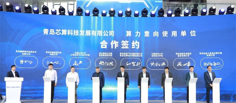 青島芯算科技發(fā)展有限公司與算力意向使用單位進(jìn)行合作簽約。
