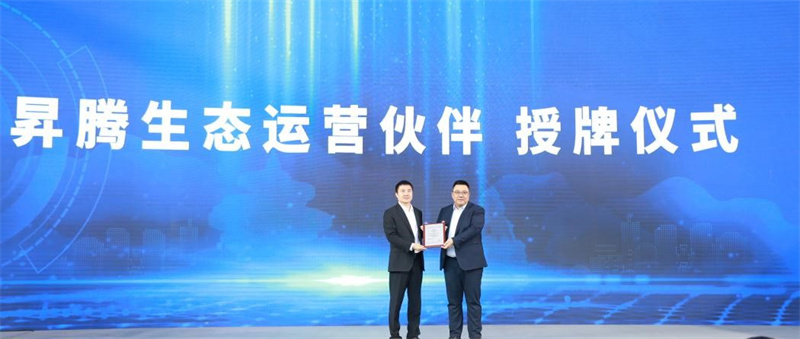華為公司與杰正澤潤(rùn)科技公司舉行昇騰生態(tài)運(yùn)營(yíng)伙伴授牌儀式。