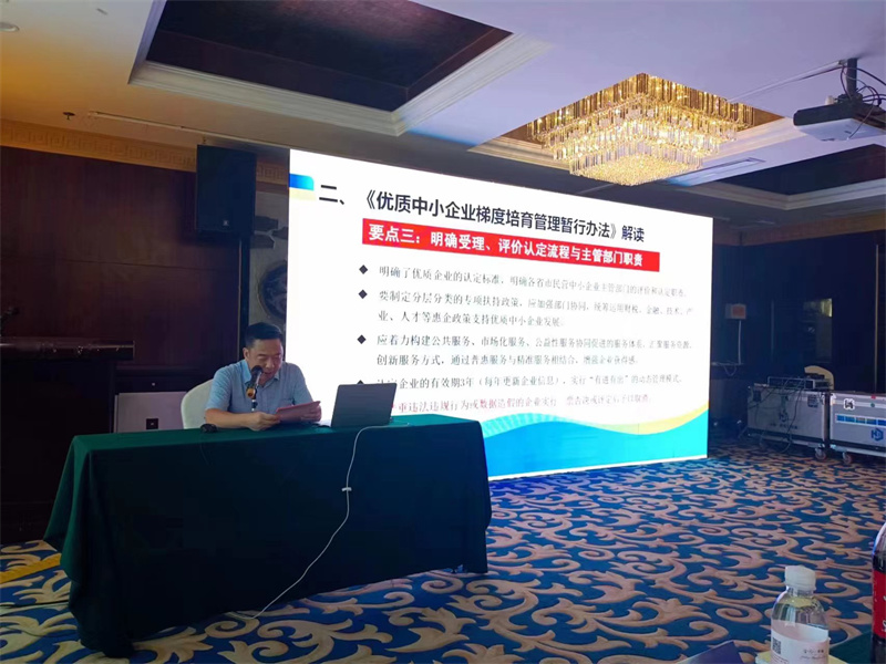 政策辦法解讀環(huán)節(jié),市民營(yíng)經(jīng)濟(jì)局一級(jí)調(diào)研員李中強(qiáng),首先介紹了“專精特新”中小企業(yè)發(fā)展背景,體現(xiàn)了黨中央國(guó)務(wù)院對(duì)接“專精特新”的高度重視。重點(diǎn)解讀了工信部《優(yōu)質(zhì)中小企業(yè)梯度培育管理暫行辦法》和我市近期印發(fā)的《青島市加快推動(dòng)“專精特新”中小企業(yè)高質(zhì)量發(fā)展行動(dòng)方案(2022—2025年》,圍繞辦法要點(diǎn)、申報(bào)對(duì)象與產(chǎn)業(yè)、受理和評(píng)價(jià)認(rèn)定流程與主管部門職責(zé)、評(píng)價(jià)或認(rèn)定標(biāo)準(zhǔn)、注意事項(xiàng)等重點(diǎn)內(nèi)容進(jìn)行深入解讀,對(duì)于下一步加強(qiáng)優(yōu)質(zhì)中小企業(yè)培育和企業(yè)申報(bào)工作有積極的意義,深受企業(yè)歡迎。