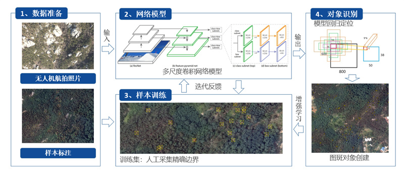 通過(guò)監(jiān)測(cè)普查摸清疫情發(fā)生底數(shù)是科學(xué)制定防治方案的前提條件,但常規(guī)普查監(jiān)測(cè)耗時(shí)長(zhǎng)、難度大、成本高,數(shù)據(jù)實(shí)時(shí)性和準(zhǔn)確性也存在一定局限。為進(jìn)一步提升防治能力,貫徹落實(shí)智慧防治理念,由嶗山區(qū)自然資源局、北京航空航天大學(xué)青島研究院聯(lián)合攻關(guān),通過(guò)融合0.05米高分辨率無(wú)人機(jī)技術(shù)、北斗高精度導(dǎo)航技術(shù)和人工智能技術(shù),對(duì)無(wú)人機(jī)獲取的高精度圖片進(jìn)行智能化分析處理,精準(zhǔn)識(shí)別監(jiān)測(cè)松材線蟲(chóng)病疫情發(fā)生情況,逐步構(gòu)建形成了“精準(zhǔn)監(jiān)測(cè)”“精準(zhǔn)識(shí)別”“精準(zhǔn)評(píng)估”和“精準(zhǔn)監(jiān)管”四位一體的松材線蟲(chóng)病空天地一體化精準(zhǔn)飛巡監(jiān)測(cè)體系,并申報(bào)山東省自然資源科學(xué)技術(shù)獎(jiǎng)。