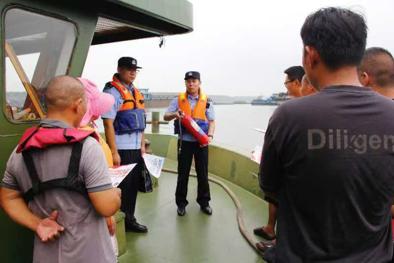 巡防民警登上貨船,以船舶消防安全制度是否落實、消防設施器材是否完好有效等檢查內(nèi)容為重點,開展船舶治安消防安全大檢查,督促船舶經(jīng)營人進一步落實船舶消防安全主體責任,強化船舶安全自查,及時消除船舶安全隱患,確保航運交通安全。