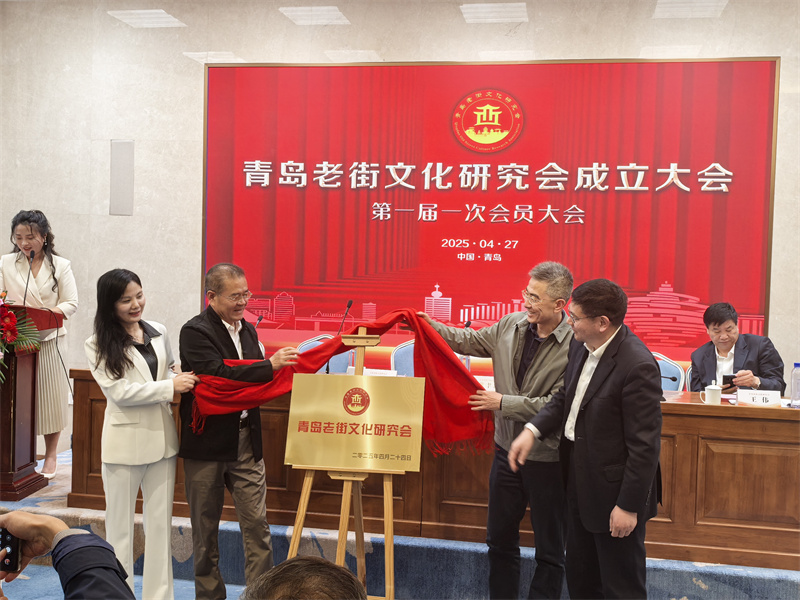 會后,青島市社會科學(xué)界聯(lián)合會二級巡視員劉寶、青島老街文化研究會發(fā)起人、青島市政府辦公廳原信息調(diào)研室主任費(fèi)聿新,青島市行政審批服務(wù)局行政審批四處處長、一級調(diào)研員劉啟武、青島老街文化研究當(dāng)選會長宋芳華以及與會嘉賓共同為青島老街文化研究會揭牌。