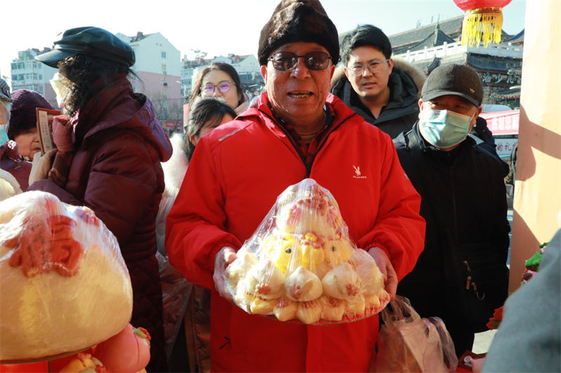 花餑餑作為山東省省級非物質(zhì)文化遺產(chǎn),不僅體現(xiàn)了山東民間美食的獨特魅力,也承載了人們對美好生活的向往和追求。在糖球會上,花餑餑的亮相不僅為游客們帶來了一場視覺和味覺的盛宴,更為傳統(tǒng)文化的傳承和發(fā)展注入了新的活力。