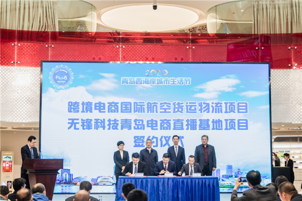 當(dāng)天,跨境電商國際航空貨運物流項目和無鋒科技青島直播電商基地項目也在青島西海岸新區(qū)簽約落地。