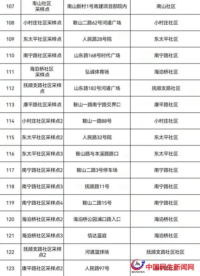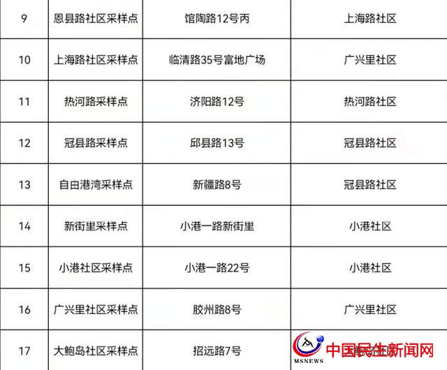 市北區(qū)核酸檢測采樣點(diǎn)一覽表