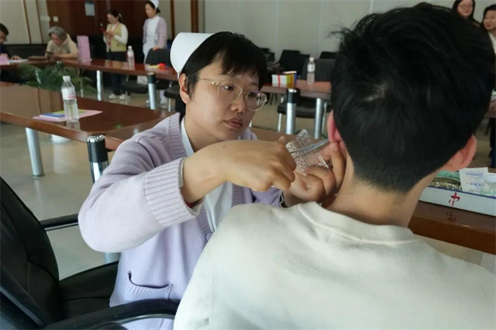 在中醫(yī)診區(qū),代表們體驗(yàn)了撳針療法和耳穴壓豆法。撳針療法是將特制的小針埋入穴位皮內(nèi),進(jìn)行長(zhǎng)時(shí)間的刺激。醫(yī)生手法嫻熟地將撳針埋入體驗(yàn)者的穴位,幾乎沒(méi)有明顯痛感。耳穴壓豆法則是在耳朵的相應(yīng)穴位上貼上王不留行籽,通過(guò)按壓來(lái)刺激穴位。體驗(yàn)者按照醫(yī)生的指導(dǎo),輕輕按壓耳穴,感受著身體的微妙變化,對(duì)中醫(yī)通過(guò)耳部穴位調(diào)節(jié)全身的理念有了更深刻的認(rèn)識(shí)。