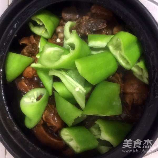 9.雞肉爛熟后放入青椒,翻炒后悶一分鐘即可出鍋