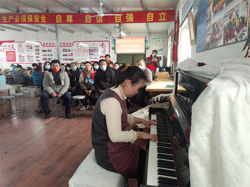 3月1日,青島水務海潤自來水集團的“@在你身邊”志愿者們來到春雨殘疾人輔助性就業(yè)中心。春雨中心的楊老師向大家簡要介紹中心的發(fā)展過程,觀看介紹短片。中心的學員還為志愿者們演奏了鋼琴曲《梁?!贰T谥行墓ぷ魅藛T的指導下,志愿者們與中心的失智、精神殘疾人一起制作手工禮品袋,交流生活的美好。“我們帶了一點慰問品,想讓每一個殘疾人感受到來自社會的關愛。勇敢的肯定自己,從而回歸社會,回報社會,這就是我們這次活動的初心與目的”參加活動的志愿者如是說。