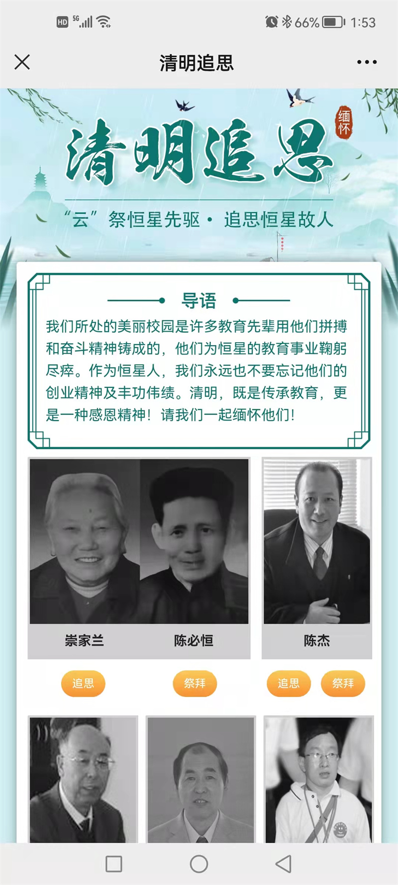 青島快訊 梨花風(fēng)起正“清明”。清明是慎終追遠(yuǎn)的傳統(tǒng)節(jié)日,青島恒星科技學(xué)院積極開展“網(wǎng)上祭英烈”活動,以緬懷革命先烈,傳承紅色基因的同時,他們還開設(shè)了專題,為恒星的教育事業(yè)發(fā)展努力奮斗過的恒星故人們進(jìn)行了“云”祭奠。