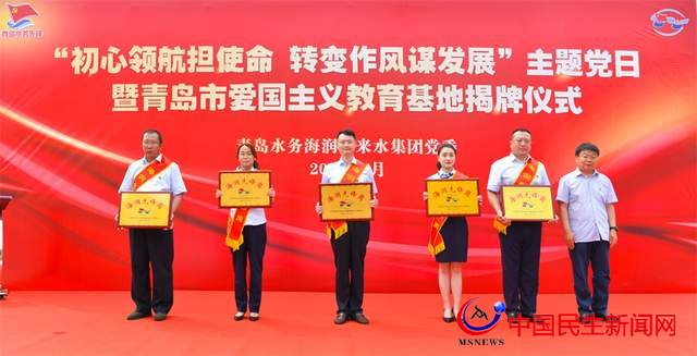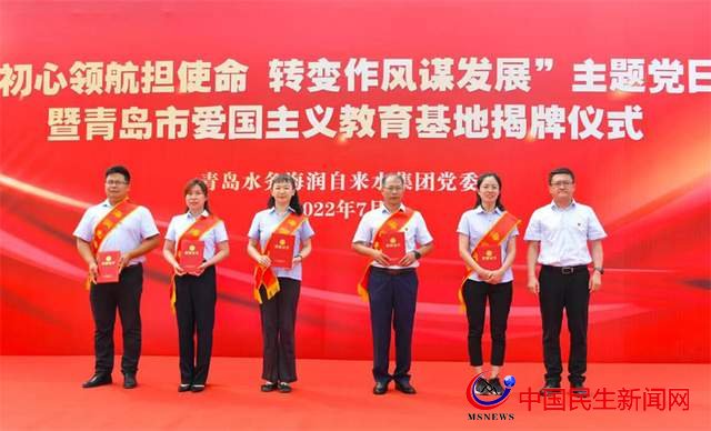 青島快訊 7月1日上午,青島水務(wù)海潤自來水集團(tuán)黨委“初心領(lǐng)航擔(dān)使命、轉(zhuǎn)變作風(fēng)謀發(fā)展”主題黨日暨青島市愛國主義教育基地揭牌儀式在青島水務(wù)黨史教育基地隆重舉行,水務(wù)集團(tuán)黨委書記、董事長夏正啟出席儀式,水務(wù)集團(tuán)黨群工作部、海潤集團(tuán)領(lǐng)導(dǎo)班子成員、受表彰的海潤先鋒崗集體和個人代表、基層黨組織書記、黨務(wù)工作人員40余人參加活動。