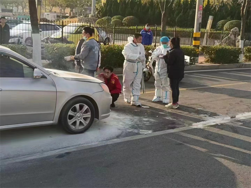 11月15日下午3點(diǎn)左右,李文清在青島支援疫情轉(zhuǎn)運(yùn)過(guò)程中,路過(guò)青島市清江路紅綠燈路口,老遠(yuǎn)看到有輛轎車冒著滾滾濃煙,等李文清駕車離近發(fā)現(xiàn)是私家轎車發(fā)動(dòng)機(jī)著火了,車主正站在旁邊手足無(wú)措。