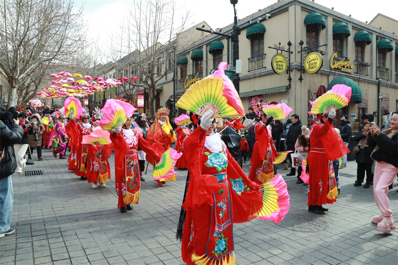 鑼鼓喧天辭舊歲,民俗演出賀新春。2月6日,2025青島蘿卜·元宵·糖球會市北新春階段在大鮑島文化休閑街區(qū)盛大啟幕。作為春節(jié)申遺成功后市北區(qū)首次舉辦的大型新春活動,本屆蘿卜·元宵·糖球會以“煙火氣 國潮風 市北情”為主題,將傳統(tǒng)民俗與歷史城區(qū)完美融合,為市民游客獻上了一場精彩紛呈的文化盛宴。