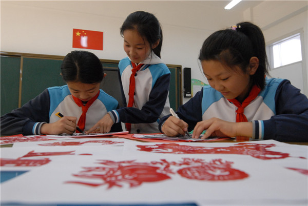 教育的同時(shí),深入挖掘剪紙文化的育人功能,把德育活動(dòng)滲透到剪紙活動(dòng)之中,讓學(xué)生在活動(dòng)中熟悉剪紙、喜愛(ài)剪紙。學(xué)生每周一節(jié)剪紙課,做到課堂上人人學(xué),課后到興趣小組學(xué),形成了學(xué)校全體師生人人學(xué)剪紙、人人會(huì)剪紙的濃厚氛圍。
