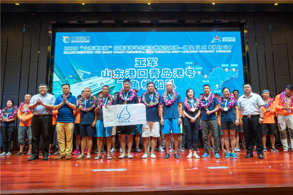 在頒獎儀式上,青島奧帆城市發(fā)展促進會常務(wù)副會長、市重大國際帆船賽事(節(jié)慶)活動組委會副主席臧愛民,濰坊濱海經(jīng)濟技術(shù)開發(fā)區(qū)黨工委副書記、管委會主任張恒道,山東港口濰坊港黨委副書記、監(jiān)事會主席嵇建勇以及組委會相關(guān)單位領(lǐng)導、參賽運動員參加儀式。濰坊濱海經(jīng)濟技術(shù)開發(fā)區(qū)黨工委副書記、管委會主任張恒道與山東港口濰坊港黨委副書記付深遠致辭。張恒道在致辭中表示,當前濰坊市濱海新區(qū)正乘著發(fā)展海洋經(jīng)濟的東風,此次半島城市帆船拉力賽充分發(fā)揮紐帶作用,為我們繪出了一幅助力半島一體化的美好藍圖,希望通過本次比賽,讓各位來賓感受濱海,愛上濱海,以賽為媒,推動濱海新區(qū)發(fā)展走上新的臺階。付深遠在致辭中表示,體育承載著一個地區(qū)繁榮強盛的夢想,“山東港口杯”仙境海岸半島城市帆船拉力賽串聯(lián)起山東半島七顆明珠,勾勒出最美海港時代畫卷,以“更快、更高、更強”之精神展現(xiàn)出山東港口向海圖強的蓬勃力量。臧愛民會長、張恒道書記、嵇建勇書記以及現(xiàn)場領(lǐng)導為獲獎船隊頒獎。