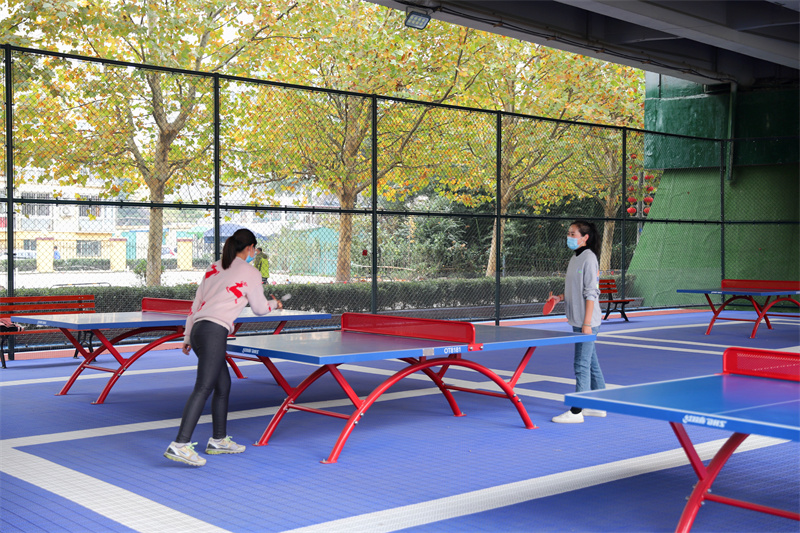 步入其中,自東向西可以看到公園被分為乒乓球區(qū)、老人健身區(qū)、兒童娛樂區(qū)、籃球區(qū)和羽毛球區(qū)五大區(qū)域。其中,老人健身區(qū)設(shè)置了太空漫步機(jī)、平步機(jī)、跑步機(jī)等多種健身器材,可滿足老人多樣化健身需求;兒童娛樂區(qū)設(shè)置了滑梯、秋千、蹦床、迷宮、轉(zhuǎn)盤、蹺蹺板等多種設(shè)施,可謂是兒童的娛樂小天地。公園內(nèi)造形優(yōu)美的運(yùn)動雕塑,給公園增添了濃郁的文化氣息;塑膠跑道、運(yùn)動地板等均采用綠色環(huán)保材料,而四周設(shè)置的花壇,更是實現(xiàn)了人車分流,讓群眾安心又放心,實現(xiàn)運(yùn)動娛樂零負(fù)擔(dān)。