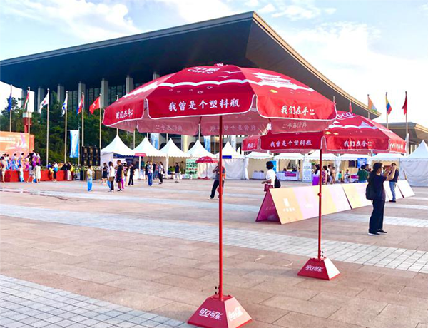 青島國際會議中心周圍,可口可樂環(huán)保戶外展內(nèi),數(shù)把紅色的太陽傘惹人注目。傘面印有青島特色的元素圖案,傘上印有“我曾是個塑料瓶”、“我們在乎”等字樣。除了這些環(huán)保太陽傘,還有可口可樂不“瓶”凡展區(qū),與其他展區(qū)展示內(nèi)容不同的是,可口可樂不“瓶”凡展示的也都是由塑料瓶回收再造的包包、衣服等環(huán)保產(chǎn)品周邊。不“瓶”凡展旨在講述PET的全生命周期,讓更多人了解PET塑料的資源屬性以及回收意義,實現(xiàn)可口可樂“天下無廢”的愿景,重塑可持續(xù)包裝的全球戰(zhàn)略,助力實現(xiàn)所用包裝的100%等量回收和再利用。