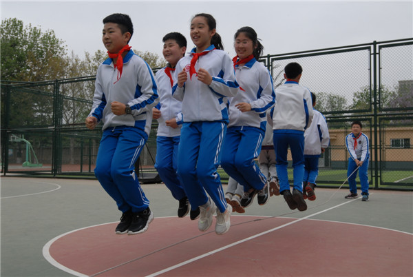 “花樣跳繩,是一項(xiàng)將體育、美育、智育等融為一體的運(yùn)動(dòng),可以更好地促進(jìn)學(xué)生們?nèi)婧椭C發(fā)展,同時(shí)能夠引導(dǎo)和教育學(xué)生們陽光、自信地健康成長(zhǎng)。”體育老師魯華如是說。教導(dǎo)處副主任劉增學(xué)認(rèn)為,“玩樂是孩子的天性,也是孩子的權(quán)利。學(xué)校應(yīng)該尊重孩子們的權(quán)利,讓孩子們?cè)谕嬷锌鞓返膶W(xué),在玩中健康的成長(zhǎng)。希望學(xué)校能把快樂的課間十分鐘還給孩子,讓他們都有一個(gè)健康快樂的童年時(shí)光。”
