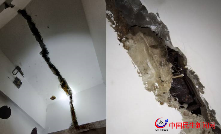 既已通過驗收,為何天花板漏水、承重梁空鼓、鋼筋裸露和人防工程開裂呢?記者向汪春生展示現(xiàn)場拍攝的照片,請其說明情況。