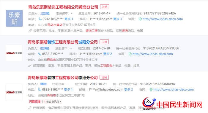 而與樂(lè)豪斯相關(guān)聯(lián)的部分分公司,黃島分公司、城陽(yáng)分公司、李滄分公司處于注銷(xiāo)狀態(tài)。