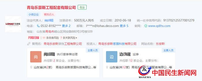 半島網(wǎng)查詢(xún)發(fā)現(xiàn),青島樂(lè)豪斯工程配套有限公司已被列為“被執(zhí)行人”曾用名“青島樂(lè)豪斯裝飾工程有限公司”