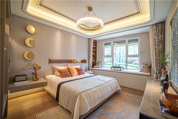 ,獨立衛(wèi)生間、衣帽間,既確保了主人翁的私密性,又為上一輩提供獨立的空間,生活從容有序;每個房間設置飄窗,將五維園林美景盡收眼底。
