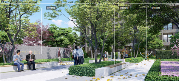 沐心頤養(yǎng)花園包含療養(yǎng)植物體系、無障礙體系、花池收納柜、緊急急救設施、自助生活貨柜、專業(yè)康復器械。物業(yè)組織太極課堂、棋藝切磋、國學講堂等中老年人活動的空間,當社區(qū)有活動時會通過社區(qū)公告欄和社區(qū)APP及時通知給廣大業(yè)主。