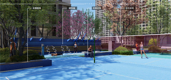青春能量場設計有羽毛球場地、乒乓球場地、健身器械等國民訓練場、能量補給站、活力健身倉、熱血球場、智能儲物柜、緊急急救設施。在閑暇之余盡情熱血戰(zhàn)一場,交流感情、康健身體。
