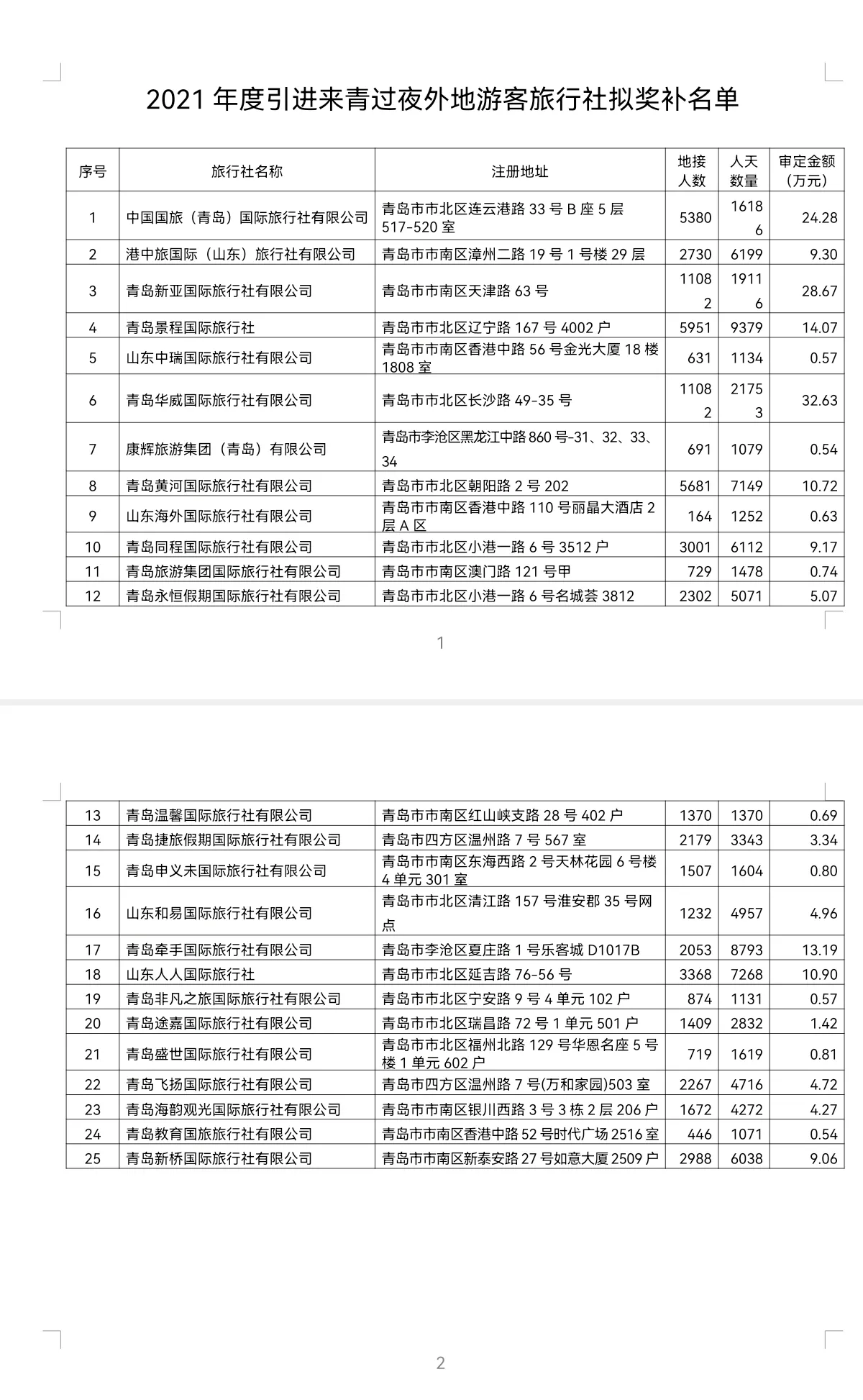 2、引進來青過夜外地游客的旅行社給予獎勵,按照數(shù)量階段,有5元/人天、10元/人天、15元/人天