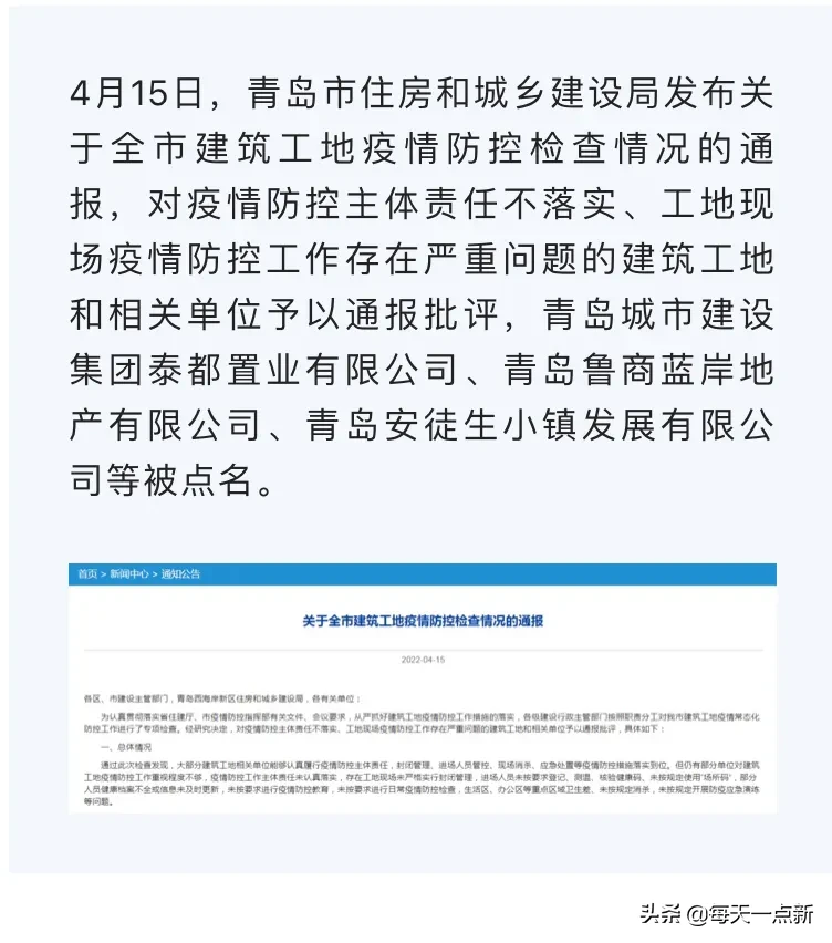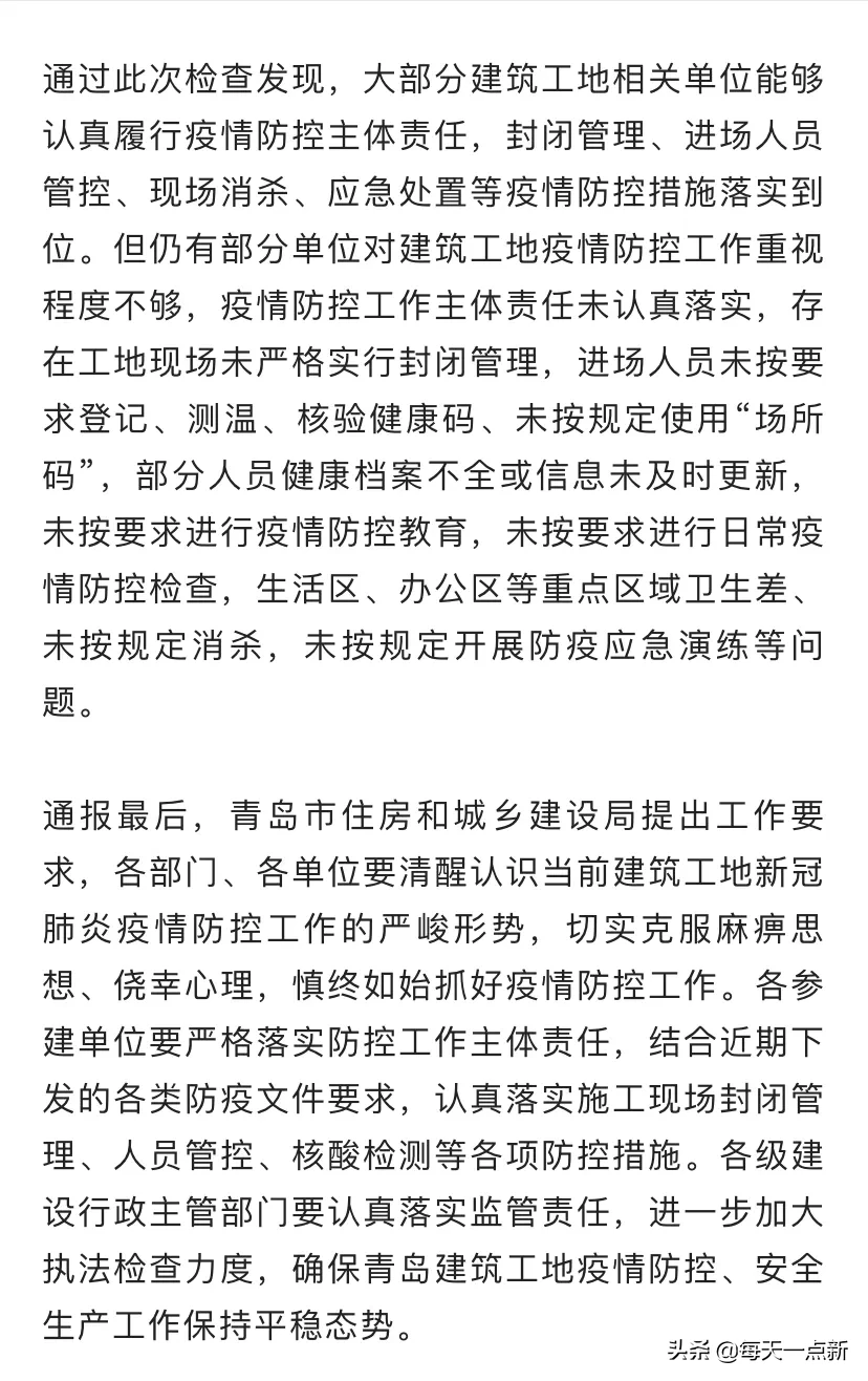 就在剛剛,青島多個建筑工地,因疫情防控不力,被通報!具體通報項目信息如下: