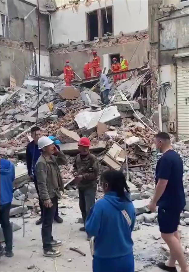 上午10時(shí)許,該商戶表示,事故現(xiàn)場已圍起了警戒線,有工作人員駐守。附近一餐館老板告訴記者,現(xiàn)場有大型工程車輛和消防救援人員?,F(xiàn)場視頻顯示,在一建筑物的廢墟中,有消防人員正在瓦礫中作業(yè),旁邊有大型工程車輛。