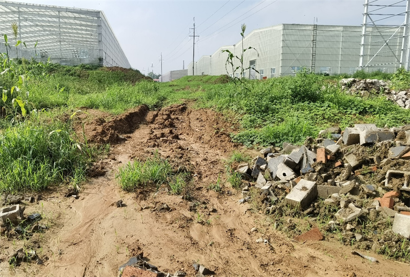 牟先生說,南鄰這個院子占地200多畝,是2021年5月份左右開始建設(shè)的,占的是王家我樂村的土地,當(dāng)時麥子都快成熟了就全被推了。園區(qū)至今都沒有項目牌、廠名等標(biāo)志,只聽說是一個現(xiàn)代化農(nóng)業(yè)高標(biāo)準(zhǔn)項目,沒人知道項目名稱,只知道是個姓王的女老板的。村民們說沒見過租地合同也不知是什么項目,只知道簽過一份領(lǐng)錢的一張紙,簽完就被村委收回了。土地確權(quán)證也不在村民手里,換證后都被村委收著,村民們也不知道現(xiàn)在土地是什么性質(zhì)。