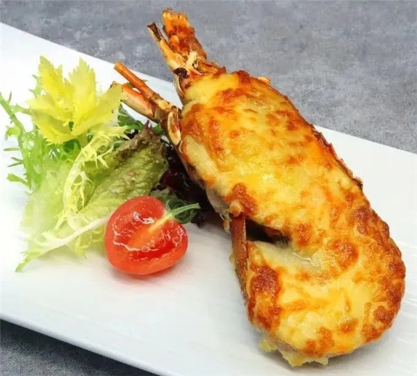 芝士焗龍蝦,新鮮龍蝦,鋪上厚厚的芝士,焗烤之后奶香濃郁到要起飛!蝦肉鮮嫩滑彈,料足到撲出來!半只龍蝦下肚,心滿意足,才驚喜地意識到美食大餐僅是開始!